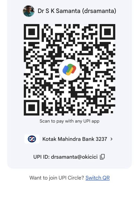 UPI Payments are accepted as well, please scan the QR code on the right or use the UPI ID mentioned below.